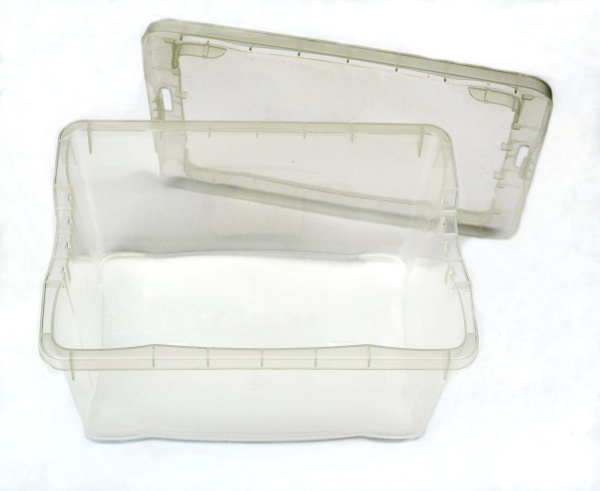 Průhledný box s víkem o rozměrech : délka 20 cm, šířka 15 cm,